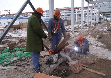 而今的通遼已進(jìn)入冬季,所下的雪,一時(shí)很難溶化,刺骨的寒風(fēng),使每位來自南方的人員,無法適應(yīng)這一切。為了實(shí)現(xiàn)目標(biāo),大家都在默默地承受著,管廊上余留的積雪,被風(fēng)一吹,成了溶不化的冰塊,給現(xiàn)場施工增加了很大的難度,安全上也存在著極大的隱患。