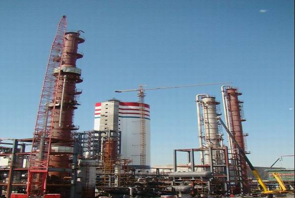 該項目是浙江省對口扶持新疆伊犁哈薩克自治州、加速推進新疆新型業化進程的一個窗口工程。公司承建其中氨合成、凈化兩套裝置,是整個廠區的兩套最核心的裝置;也是技術含量最高、安裝起來最麻煩的兩套裝置。其技術特點是塔多、罐多、管子多、電氣儀表多,工作面復雜。主要包括氨合成、氨壓縮、氨冷凍、低溫甲醇洗、液氮洗、硫回收、硫磺造粒、冷凝液回收、總控制樓、壓縮機廠房、氣化變電所以及界區內變電、配電設施的土建、設備、管道、鋼結構、電氣、儀表、防腐、保溫等施工任務。該項目工期緊。項目要求2010年4 月1日開始施工,至2011年6月30日建成投產,工程合同工期為455天,屬跨冬季施工。而新疆奎屯地區一年有五個月屬不利于施工的低溫冰凍期,最低溫度達零下30多度,凍土層1.5米以上。項目任務重:要在不到10個月 的時間里,要完成近200臺設備的安裝;其中膜組2000多套,安裝管線、工藝管線60000多米,配電柜、控制箱186臺,電儀橋架110000多米,控制電纜、動力電纜近10000米,密集型母線橋600多米,氧、氬、電焊接總焊口130000多達英。項目技術要求高:合成氣化裝置是整個氮肥廠的核心裝置,超高、超重的塔、罐類設備多,吊裝技術要求高。如合成塔、CO2解吸塔、硫化氫濃縮塔高60米以上,吊裝重量在300噸以上;1601#洗滌塔重600多噸,高70米以上,需要用1000噸以上的大吊車分段吊裝才能成功,高空作業點多。
