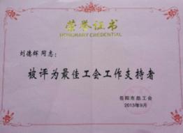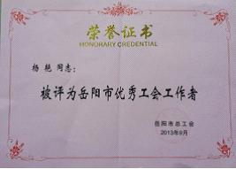 9月30日,在岳陽市總工會召開的第六屆代表大會上傳出喜訊。公司工會榮獲“岳陽市先進基層工會”,公司黨委書記、董事長劉德輝被岳陽市總工會授予“岳陽市最佳工會工作支持者”榮譽稱號,公司楊艷被岳陽市總工會授予“岳陽市優(yōu)秀工會工作者”榮譽稱號。