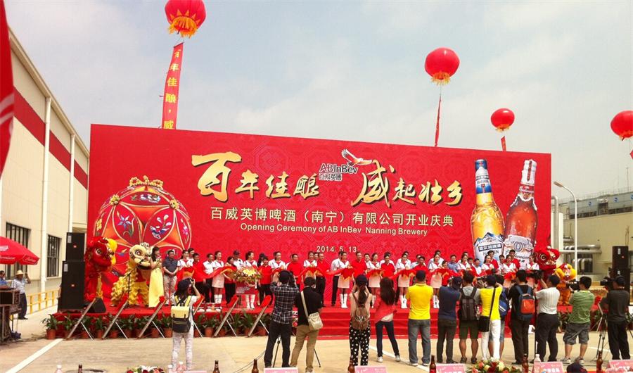5月13日,廣西東盟經濟開發區百威英博啤酒(南寧)有限公司新廠內,彩旗招展。這里正在舉行的是年產25萬千升啤酒新廠開業慶典。南寧市副市長石文懷、中國酒業協會副秘書長兼啤酒分會秘書長何勇、百威英博亞太區總裁鄧明瀟等領導參加了開業典禮并致辭。