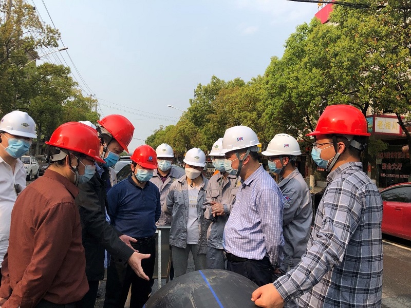 周鴻一行首先在廠區進行了檢查,詳細了解目前施工進展、防疫防控和現場各項安全生產措施落實情況,隨后到各路段現場檢查了管網施工情況。