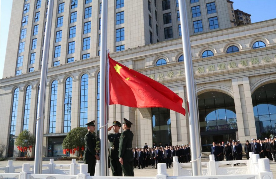上午九時九分,陽光明媚,伴隨著雄壯的《義勇軍進行曲》,五星紅旗冉冉升起,全場人員精神抖擻、莊嚴肅立,面向國旗行注目禮,共祝祖國繁榮昌盛,祝愿公司發展蒸蒸日上。