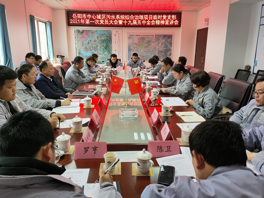 3月1日下午,岳陽市中心城區(qū)污水系統(tǒng)綜合治理項目臨時黨支部召開了2021年第一次黨員大會暨黨的十九屆五中全會精神宣講會。公司宣講團副團長、黨委副書記、總經理周鴻作宣講報告。項目臨時黨支部書記陳誠主持會議。支部26名黨員、入黨積極分子參加了學習。