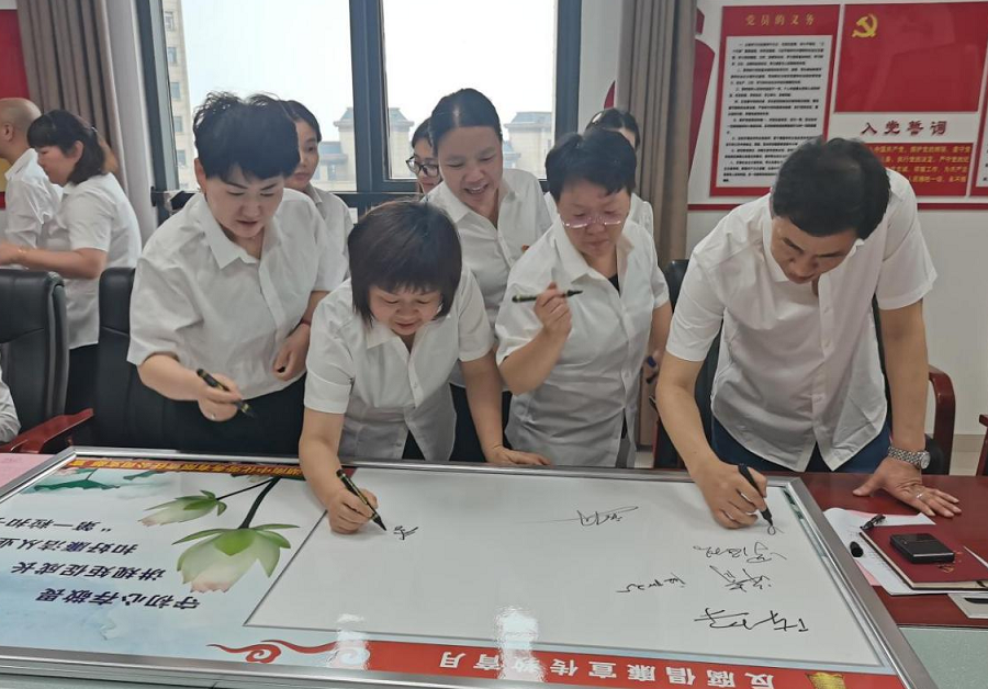 在5月27日,中化勞務黨支部組織開展了“反腐倡廉宣傳教育月”主題簽名活動。活動中,全體到會人員在簽名版上簽上了自己的名字,表達扣好廉潔從業“第一粒扣子”的決心與信心。