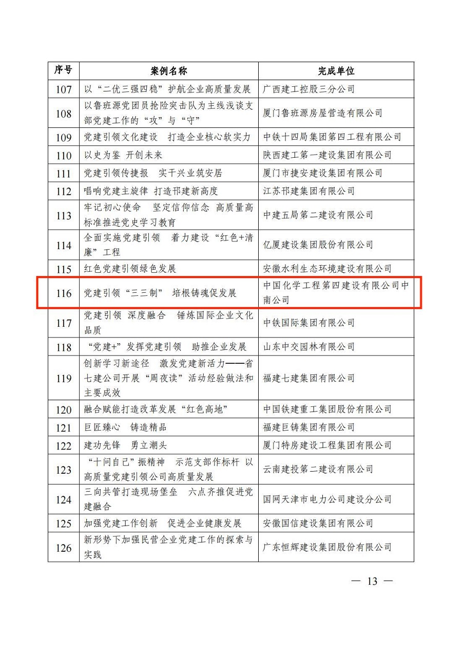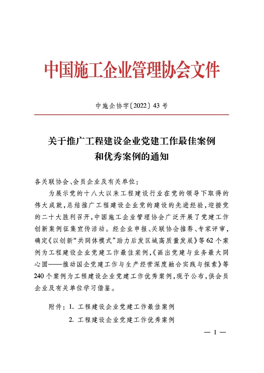 公司2項黨建工作案例獲評“工程建設企業黨建工作優秀案例”