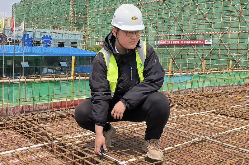 青年突擊隊(duì)不僅是“突擊隊(duì)”“生力軍”,還是項(xiàng)目“人才學(xué)校”。青年突擊隊(duì)隊(duì)員張豪元是2022年入職的大學(xué)生,因?yàn)楣ぷ鹘?jīng)驗(yàn)不足,他便堅(jiān)守施工現(xiàn)場,向前輩們請教專業(yè)問題。在最熱的9、10月份,張豪元每日扛著儀器放線測標(biāo)高,踏著朝陽出,伴著群星歸,一身干爽的衣服走到現(xiàn)場就已全部濕透,在不趕工期的晚上,他就學(xué)習(xí)二建課程。張豪元從小在北方長大,不太適應(yīng)南方的暴曬悶熱和辣口飯菜,整個(gè)人黑了也瘦了。