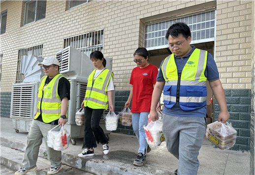 在抗洪救災的號角吹響后,市政公司綜合辦迅速響應,主動擔當,第一時間做好了應急部署和資源調度。“周子雄和顧云潮你們要當好先鋒,靈活響應各方需求;李穎負責聯系各大商家平臺,確保前線救援人員有充足的熱食供應;唐夢婷去對接災區村委,盡可能多的協調到休息場地,讓疲憊的救援隊伍能夠得到及時修整。”綜合辦的“家長”吳果葉逐一給每個人分配著任務,她的聲音清晰而堅定。