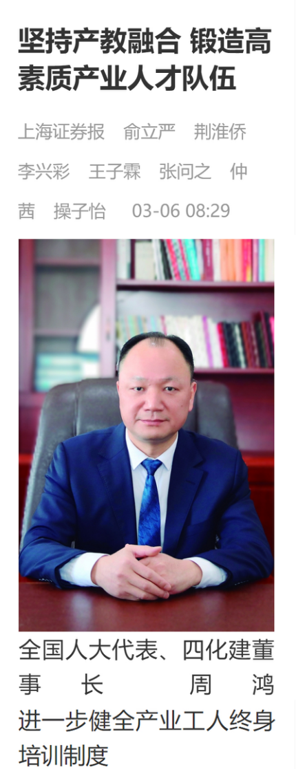 3月6日,證券時(shí)報(bào)客戶端以“堅(jiān)持產(chǎn)教融合 鍛造高素質(zhì)產(chǎn)業(yè)人才隊(duì)伍”為題報(bào)道周鴻的建議:進(jìn)一步健全產(chǎn)業(yè)工人終身培訓(xùn)制度。