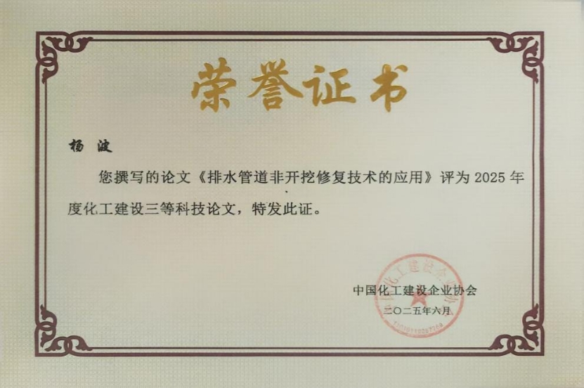 近日,中南公司自主研發(fā)的“大型金屬管道管口校正器及管口校正方法”獲得國(guó)家發(fā)明專利證書,撰寫的論文《排水管道非開挖修復(fù)技術(shù)的應(yīng)用》獲評(píng)2025年度化工建設(shè)三等科技論文。兩項(xiàng)成果的落地,標(biāo)志著中南公司在施工技術(shù)創(chuàng)新領(lǐng)域邁上新臺(tái)階,為解決工程建設(shè)中的實(shí)際難題提供了更高效、更優(yōu)質(zhì)的技術(shù)方案。