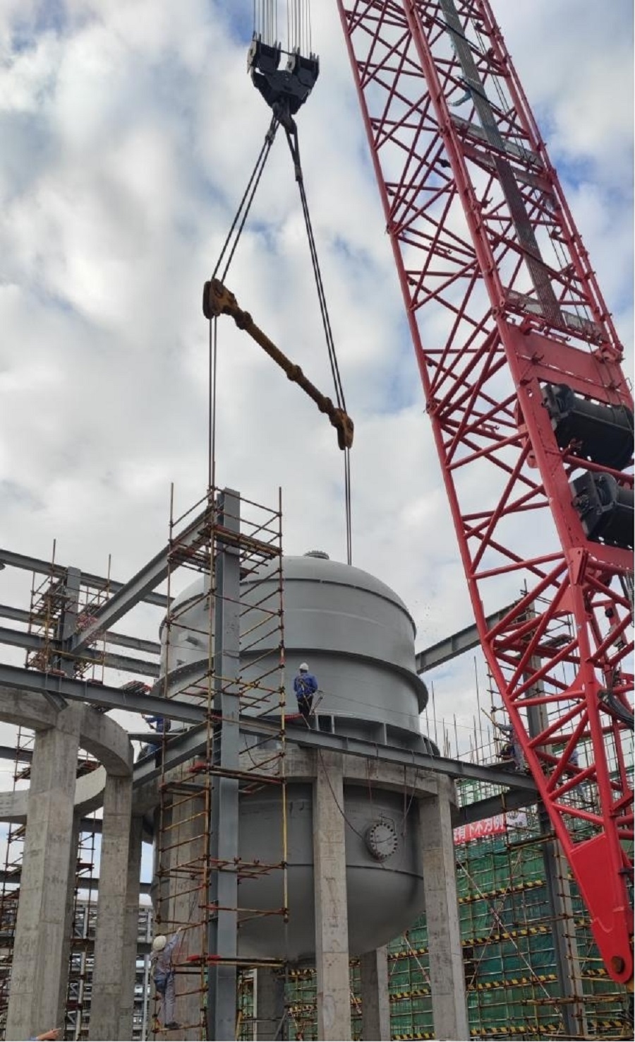 經(jīng)過(guò)項(xiàng)目部統(tǒng)籌安排,制定吊裝方案,強(qiáng)化現(xiàn)場(chǎng)協(xié)調(diào)與監(jiān)管,設(shè)備吊裝取得圓滿成功。
