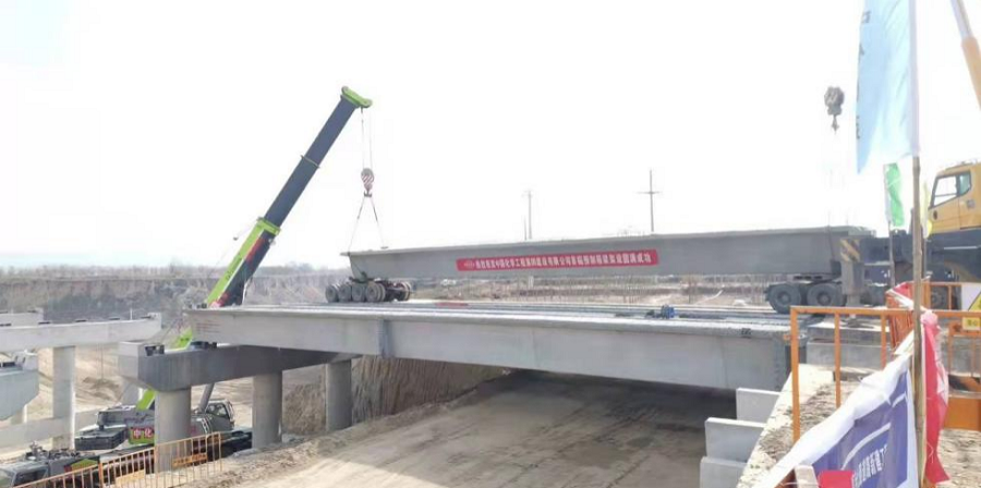 西部分公司榆中生態(tài)創(chuàng)新城夏緯七路項(xiàng)目首榀箱梁架設(shè)啟動(dòng)