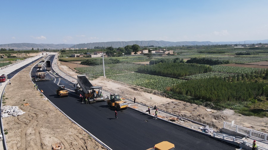 西部公司蘭州榆中項目中秋攤鋪道路瀝青