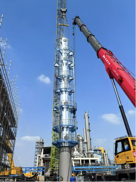 4月1日,由中化勞務公司承建的衛(wèi)星化學股份有限公司年產(chǎn)9萬噸丙烯酸和10萬噸精丙烯酸安裝工程項目完成首臺4C-130汽提塔吊裝作業(yè),標志著該項目全面進入設備安裝階段,為后續(xù)工程推進打下扎實基礎。