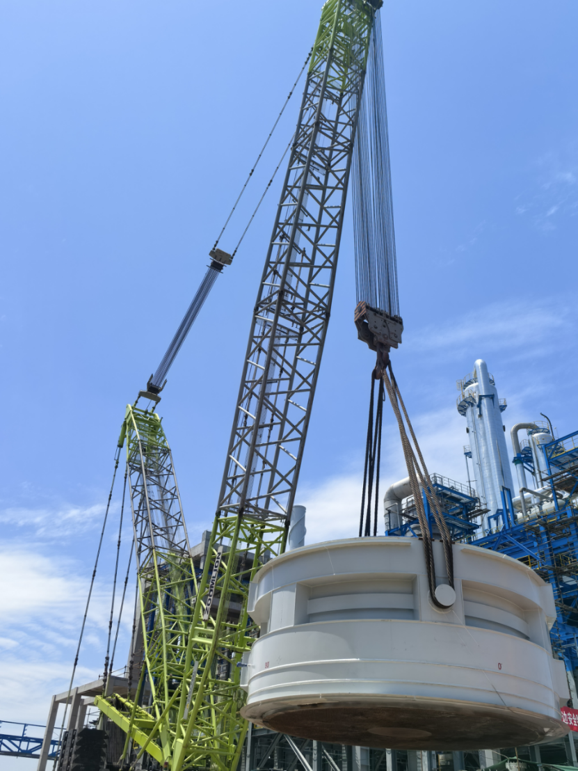 公司衛(wèi)星石化項目兩臺超800噸大型反應(yīng)器吊裝就位